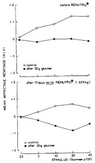"The investigators found what one might expect, that the pleasantness rating of the sweet solutions was lower after the glucose load than before, suggesting some degree of satiety."